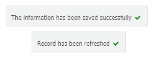 Once data has been entered and saved, or refreshed, a status message appears on this window.