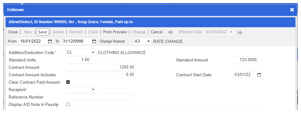 - The default Standard Amount/ Rate can be specified in the relevant Allowance/ Deductions Code.