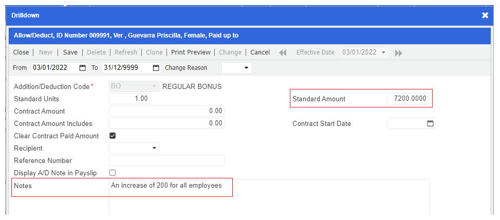 You may need to update the details for a specific Allow/Deduct Code (e.g. increase in Standard Amount or addition of Notes).