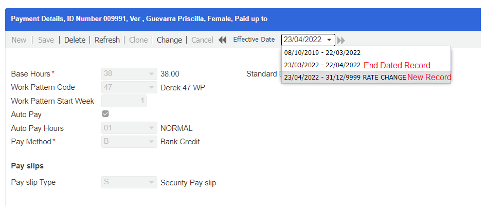 - Once the update has been successfully saved, you can now check the new effective dated records.
