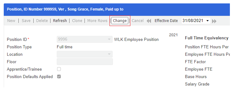 - If you only click Change and do not update the From date or the Position ID, the Payroll and Costing Defaults will be read-only while the other fields are still editable.