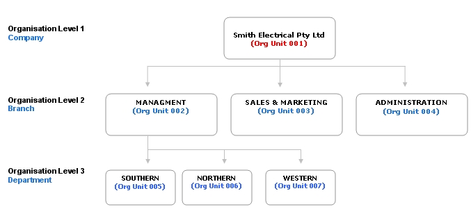 - Organisation Levels identify the hierarchy of your organisation structure, with the company being the highest level.
