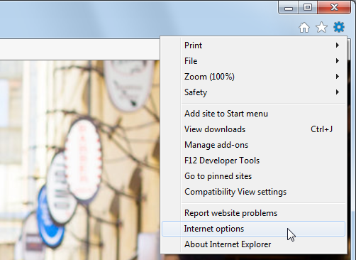 1. Click on the Tools option (gear icon) and select Internet Options.
